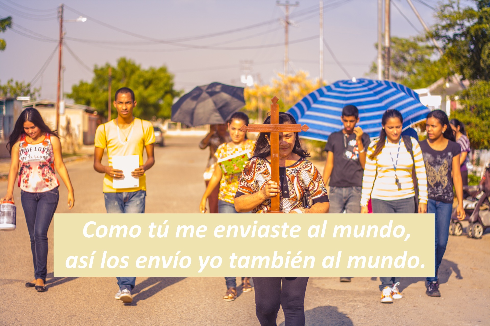 Y les decía: «La mies es abundante y los obreros pocos; rogad, pues, al dueño de la mies que mande obreros a su mies. ¡Poneos en camino! Mirad que os mando como corderos en medio de lobos. No llevéis talega, ni alforja, ni sandalias; y no os detengáis a saludar a nadie por el camino. Cuando entréis en una casa, decid primero: «Paz a esta casa.» Y si allí hay gente de paz, descansará sobre ellos vuestra paz; si no, volverá a vosotros. Quedaos en la misma casa, comed y bebed de lo que tengan, porque el obrero merece su salario. No andéis cambiando de casa. Si entráis en un pueblo y os reciben bien, comed lo que os pongan, curad a los enfermos que haya, y decid: «Está cerca de vosotros el reino de Dios.»»