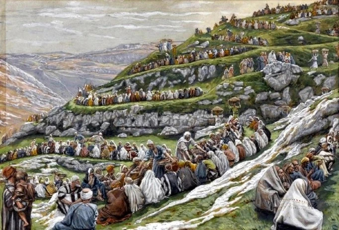 - En el evangelio, un gran número de gente de todas partes, ha venido a pie siguiendo y escuchando a Jesús durante días y días. Jesús no quiere fomentar las esperanzas del mesianismo que espera la gente, sino que se aleja de ellas, encontrando en la oración, la claridad de su camino mesiánico hacia la cruz, y el ánimo para recorrerlo.